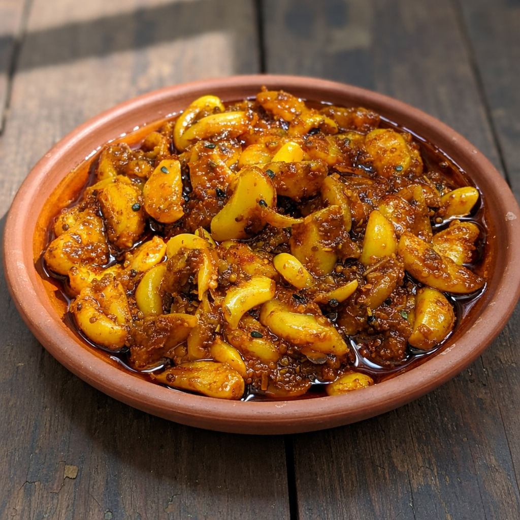 What makes this pickle special is its perfectly balanced, aromatic masala prepared using high-quality mustard seeds, fennel, fenugreek, nigella seeds, premium turmeric, and authentic red chili powder. Each batch is made with care to deliver the authentic homemade taste while maintaining modern hygiene and quality standards.